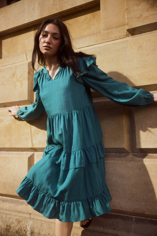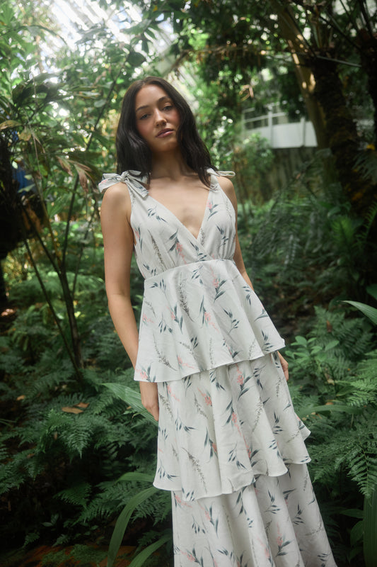 Bow Back Tiered Skirt Midi Dress